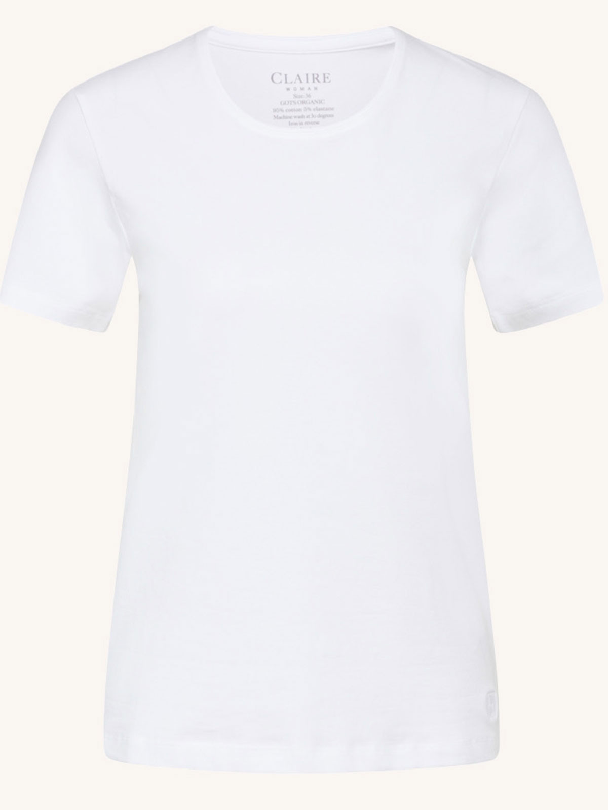 Superskön bastopp från Claire Woman i ekologisk bomull. Modellen är rak och klassisk med rundad hals, kort ärm och rak nederkant.