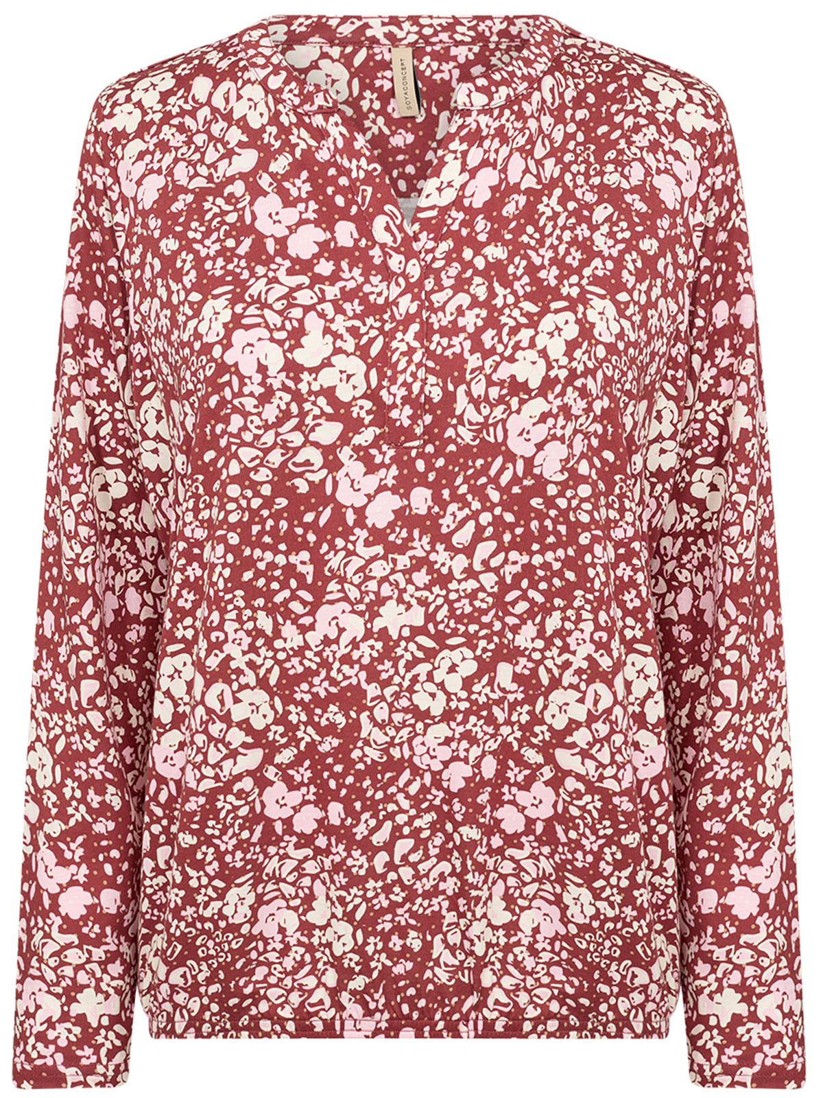 Skön trikåtopp med hellång ärm från SoyaConcept. Resår längst ned för att kunna blusa upp den och justera längden som du vill.