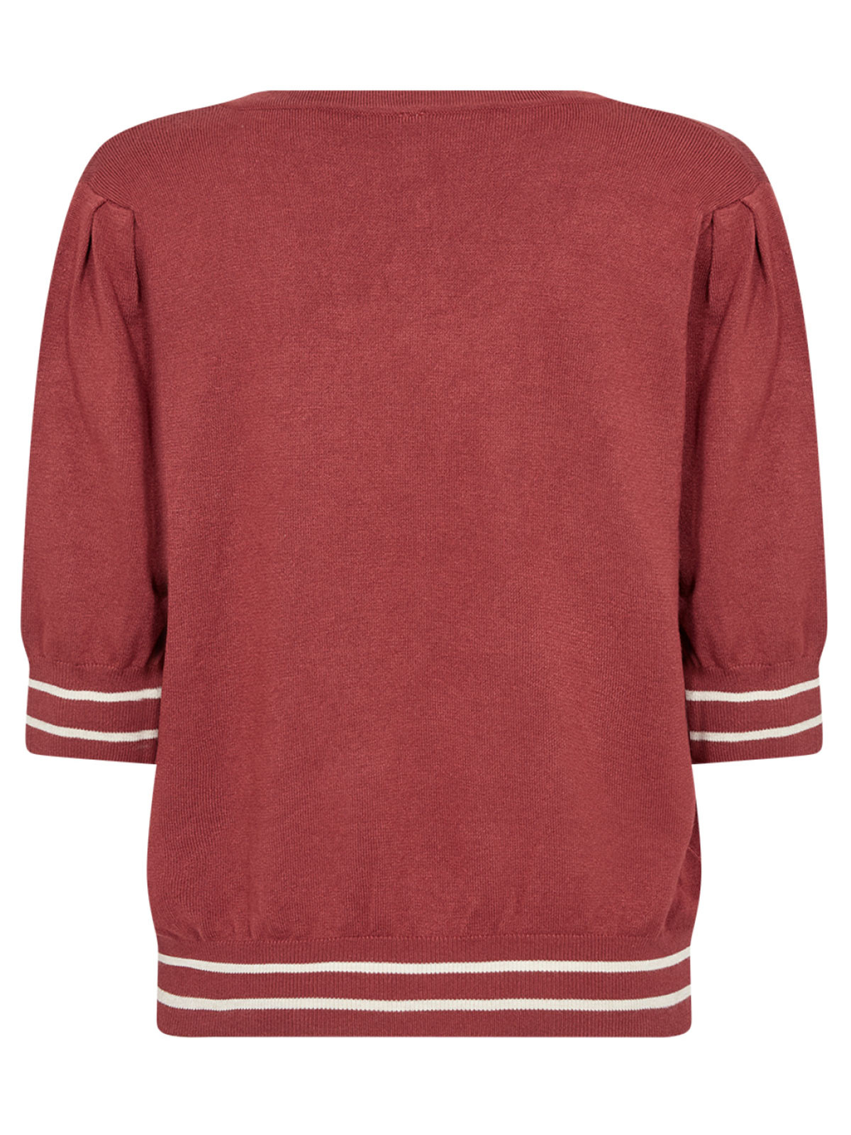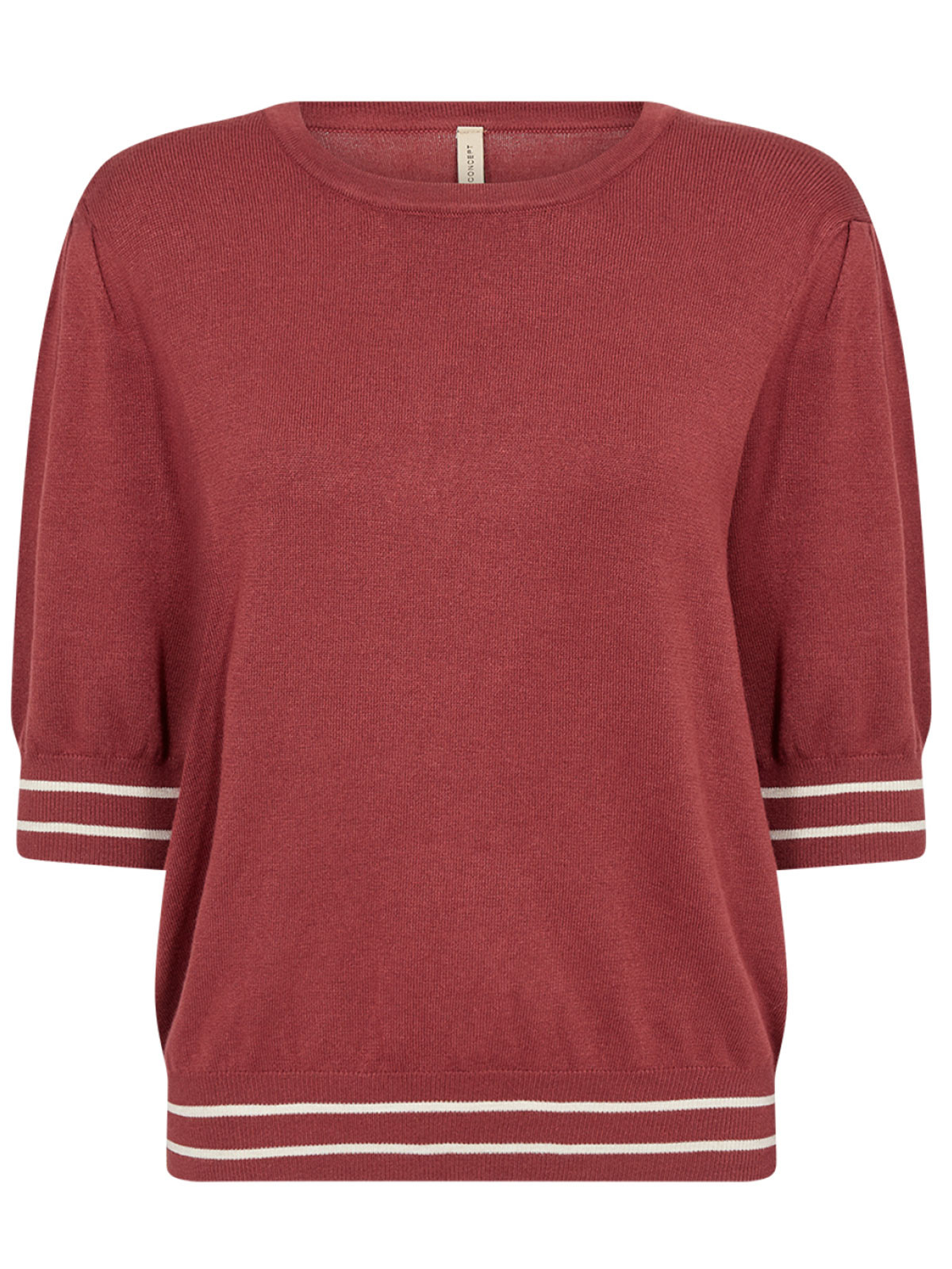 En ljuvlig finstickad topp med puffärm från SoyaConcept. Modellen är rak med rundad halsringning och den korta ärmen har liten puff och en bredare mudd.