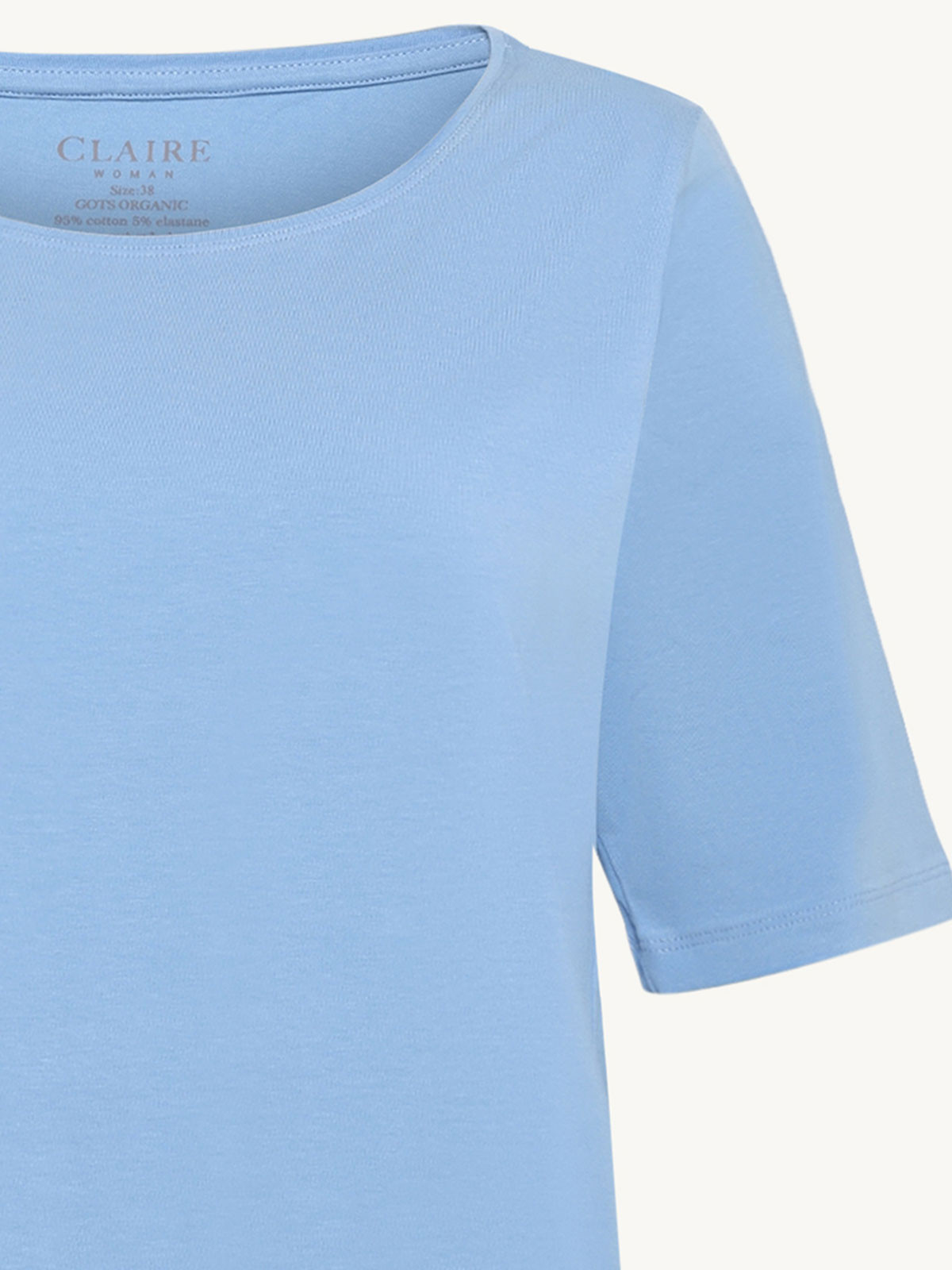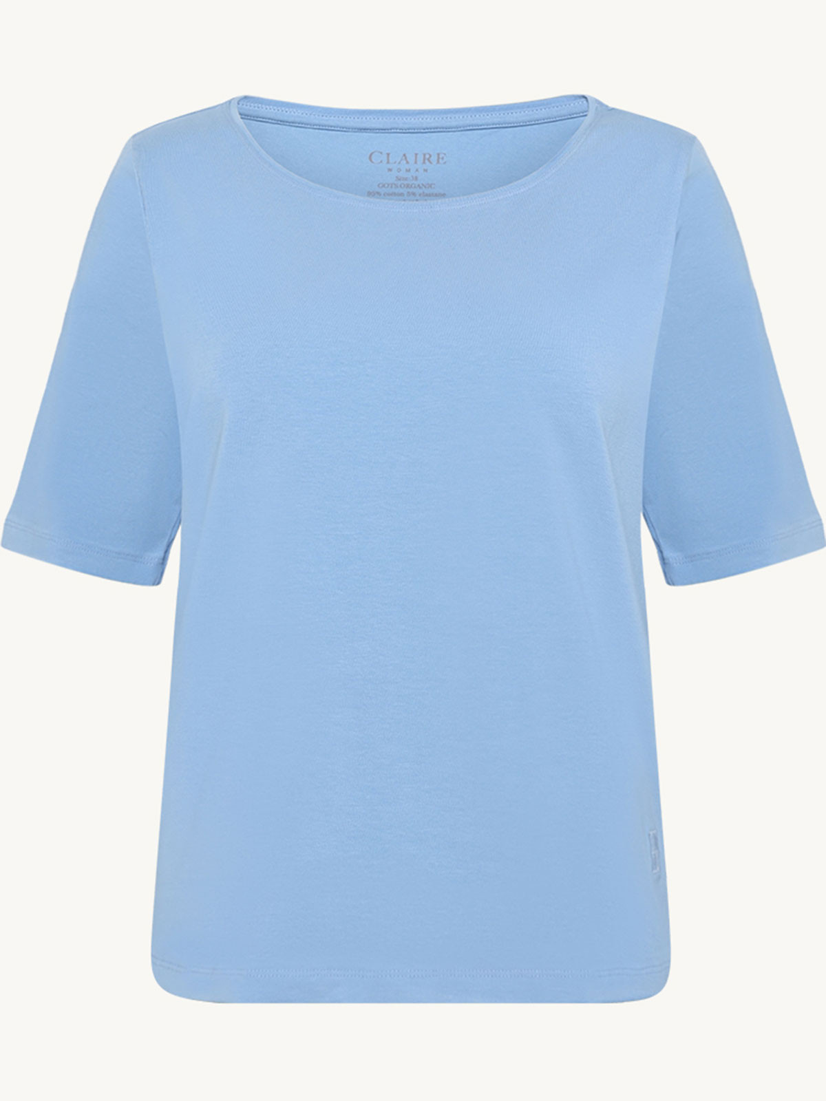 Superskön bastopp från Claire Woman i ekologisk bomull. Modellen är rak och klassisk med rundad hals, kort ärm och rak nederkant.