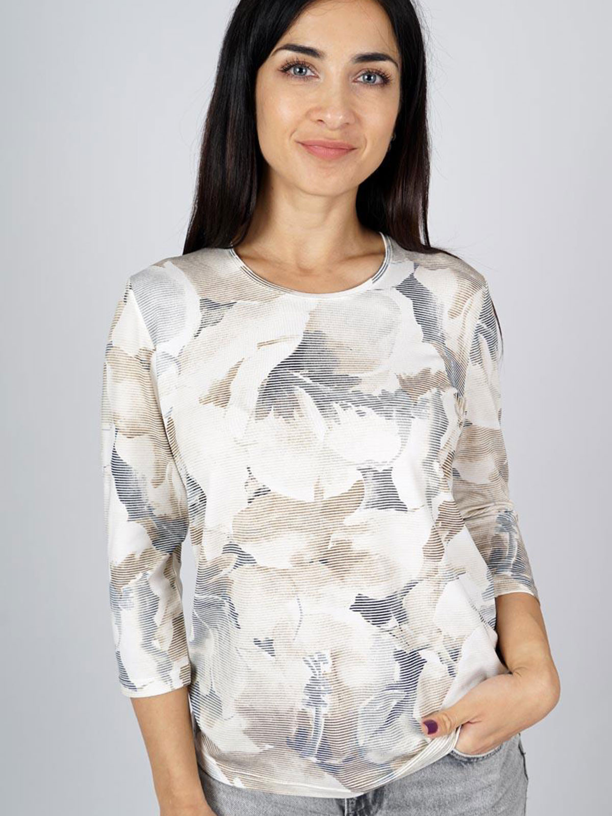 Enkel men snygg topp med rundad halsringning och 3/4 dels ärmlängd från Marinello.