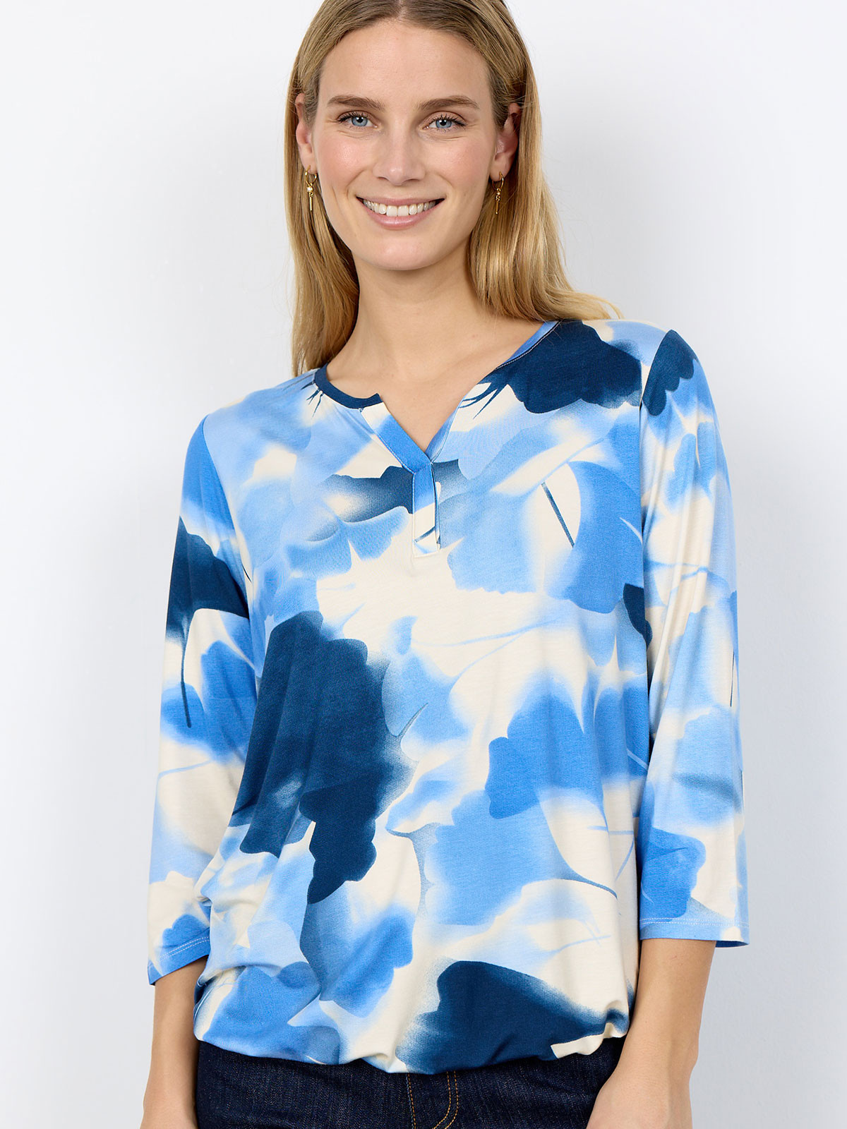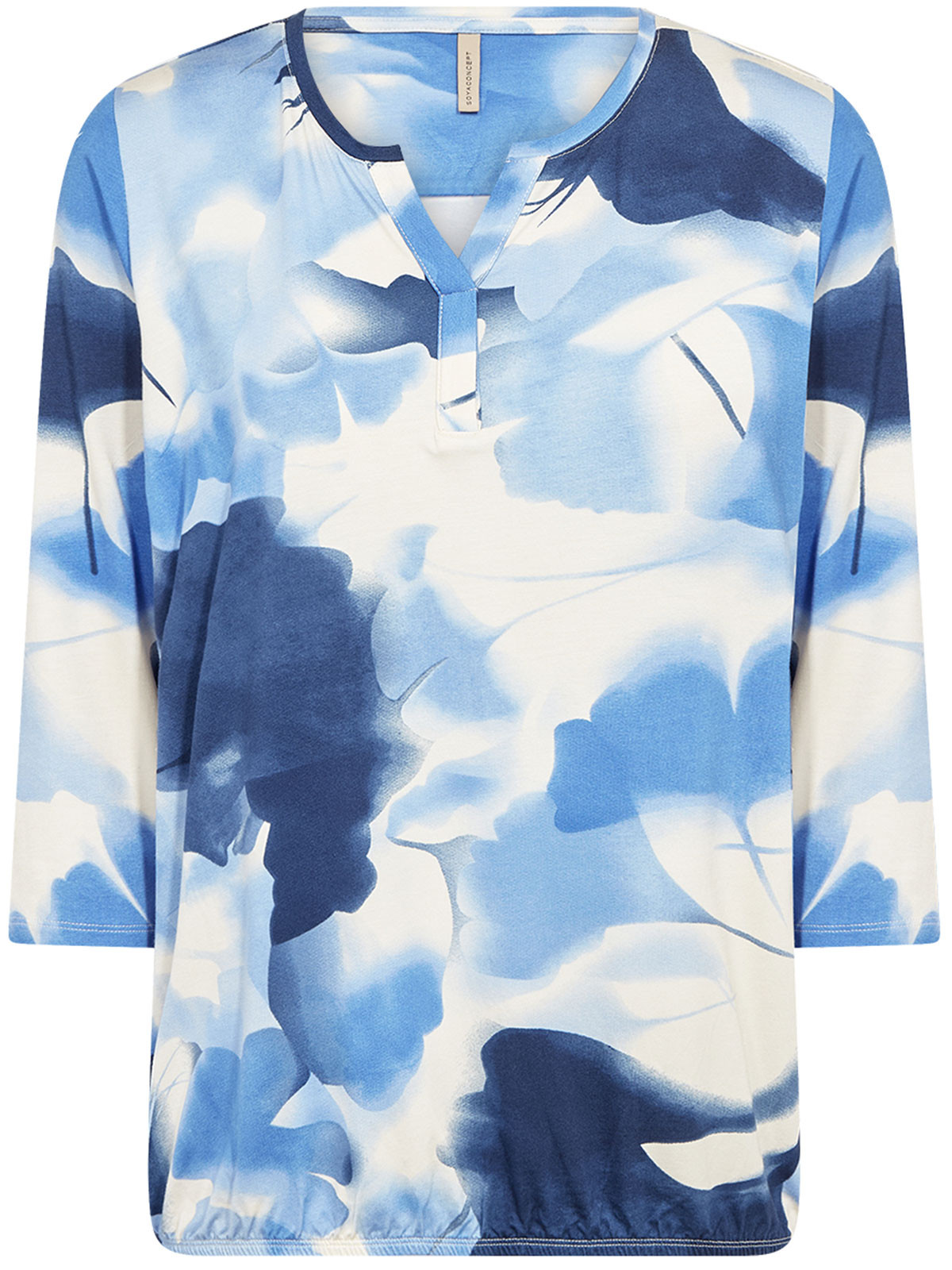 Snygg topp från SoyaConcept i superskön lyocellkvalitet. Modellen har rundad hals med V-formad öppning och trekvartslång ärm.
