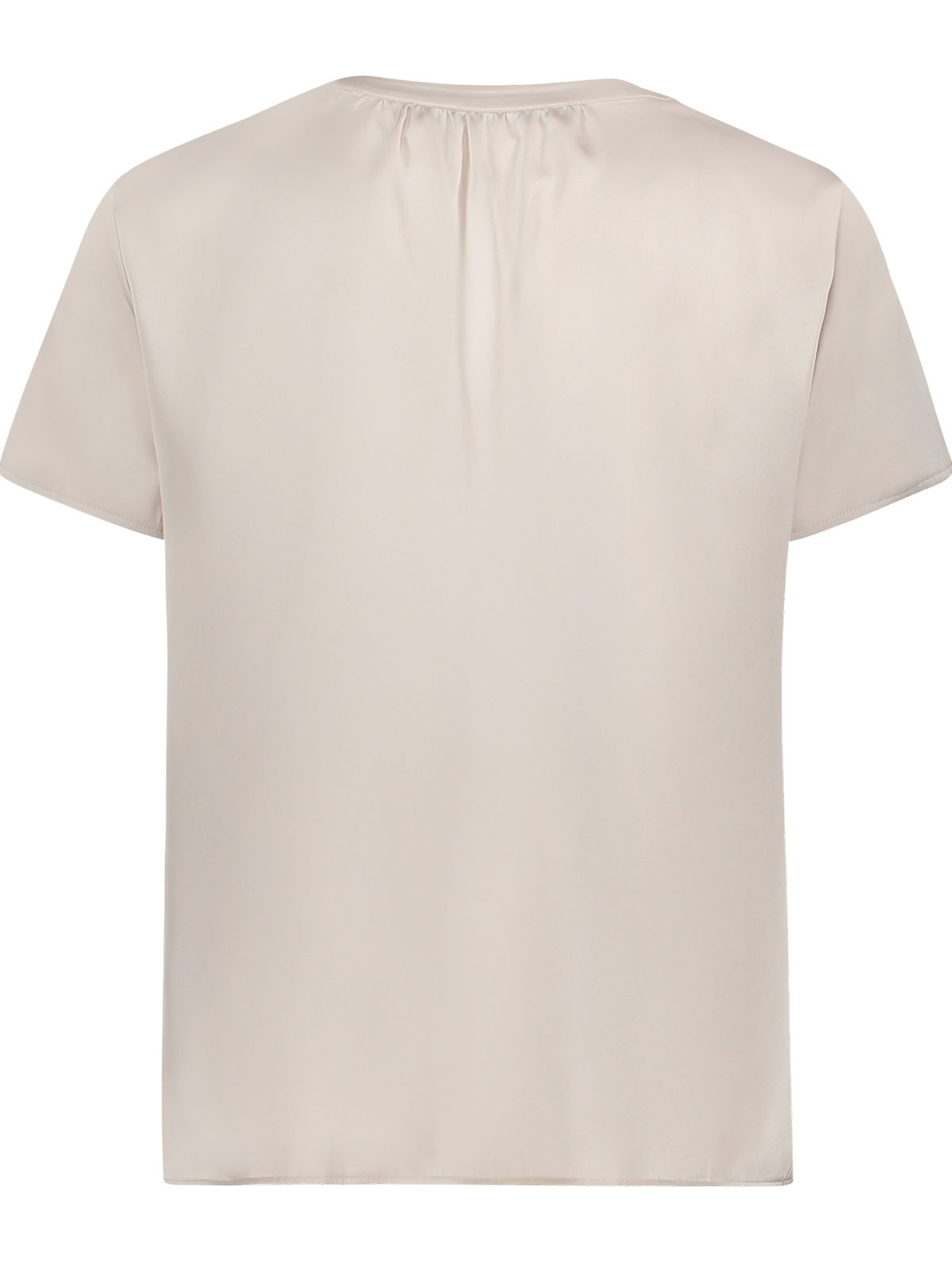 Supersöt satintopp från Betty Barclay. Modellen har rundad hals med rynksöm och en V-formad öppning fram. Ärmen är kort och toppen är vid och rak så den hänger löst på höften.