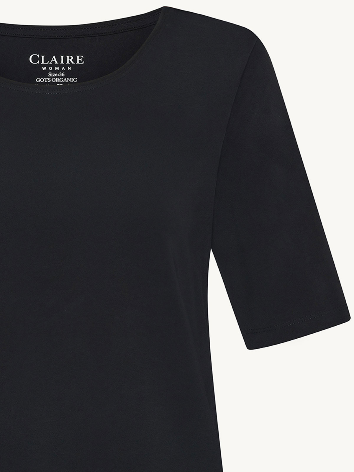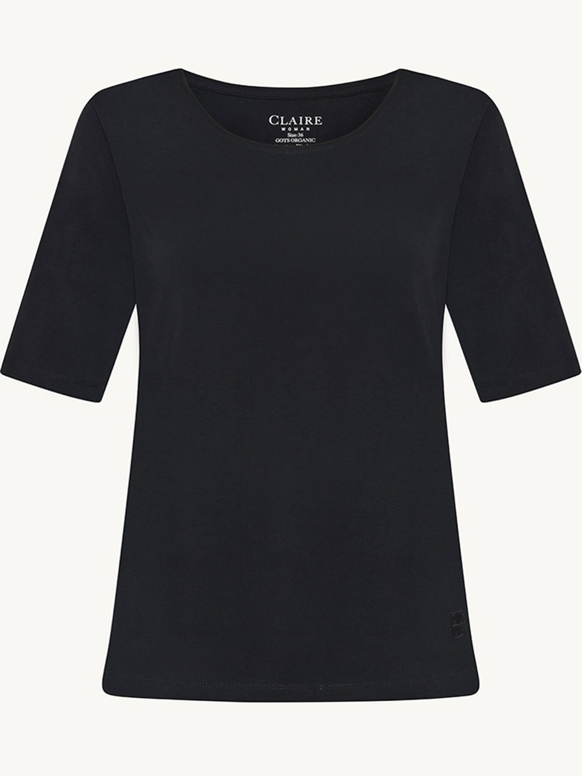 Superskön bastopp från Claire Woman i ekologisk bomull. Modellen är rak och klassisk med rundad hals, kort ärm och rak nederkant.