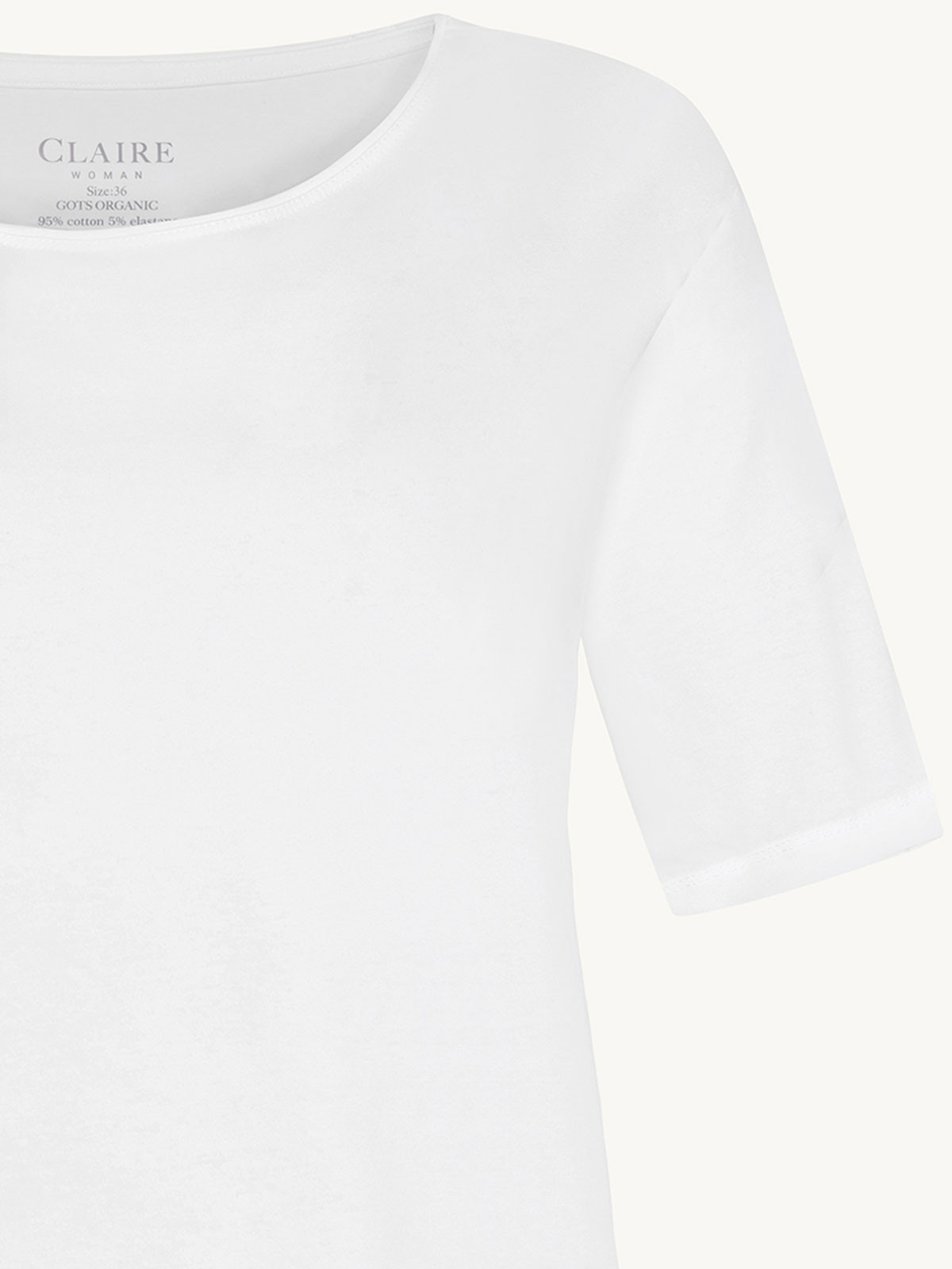 Superskön bastopp från Claire Woman i ekologisk bomull. Modellen är rak och klassisk med rundad hals, kort ärm och rak nederkant.