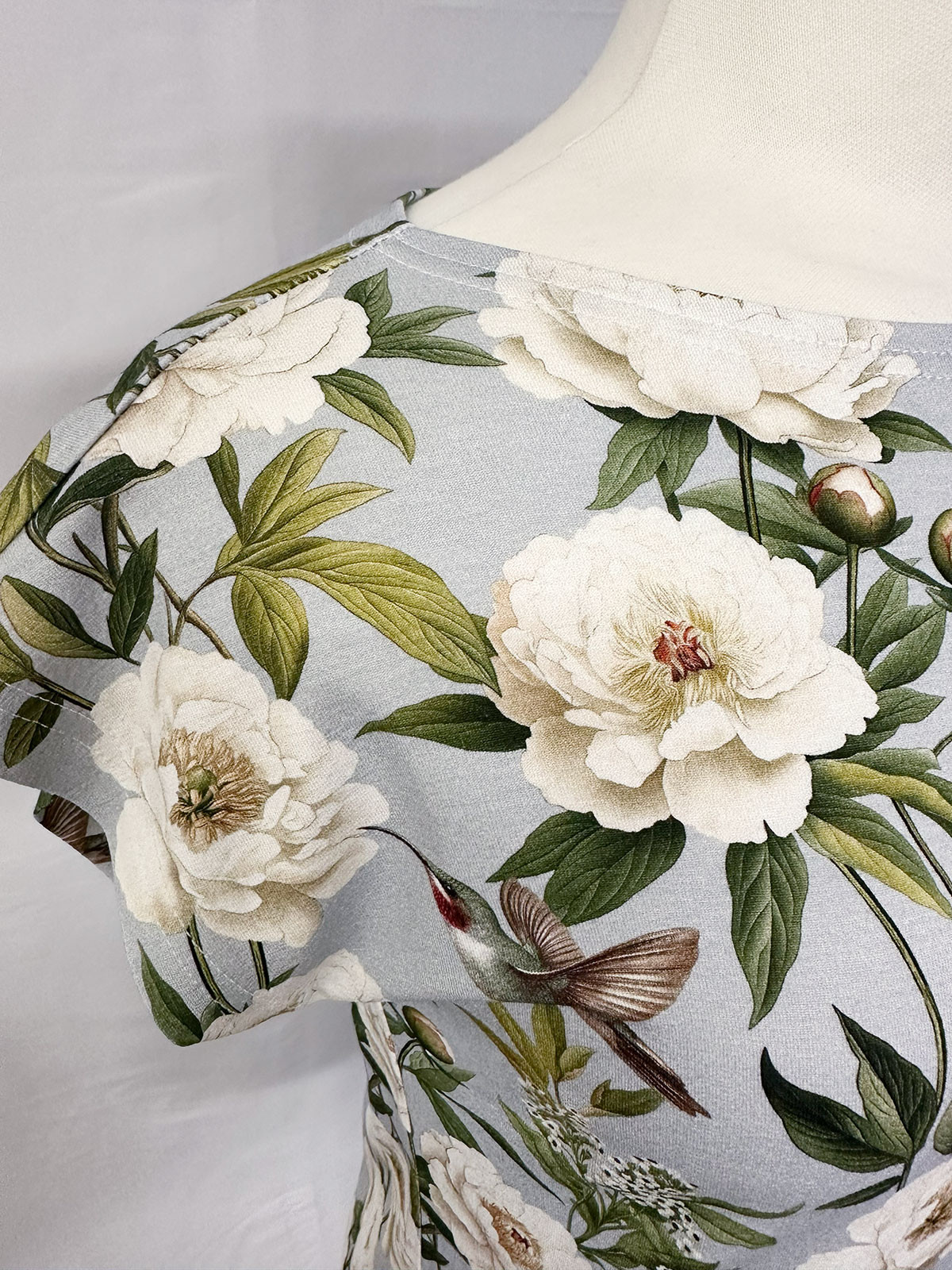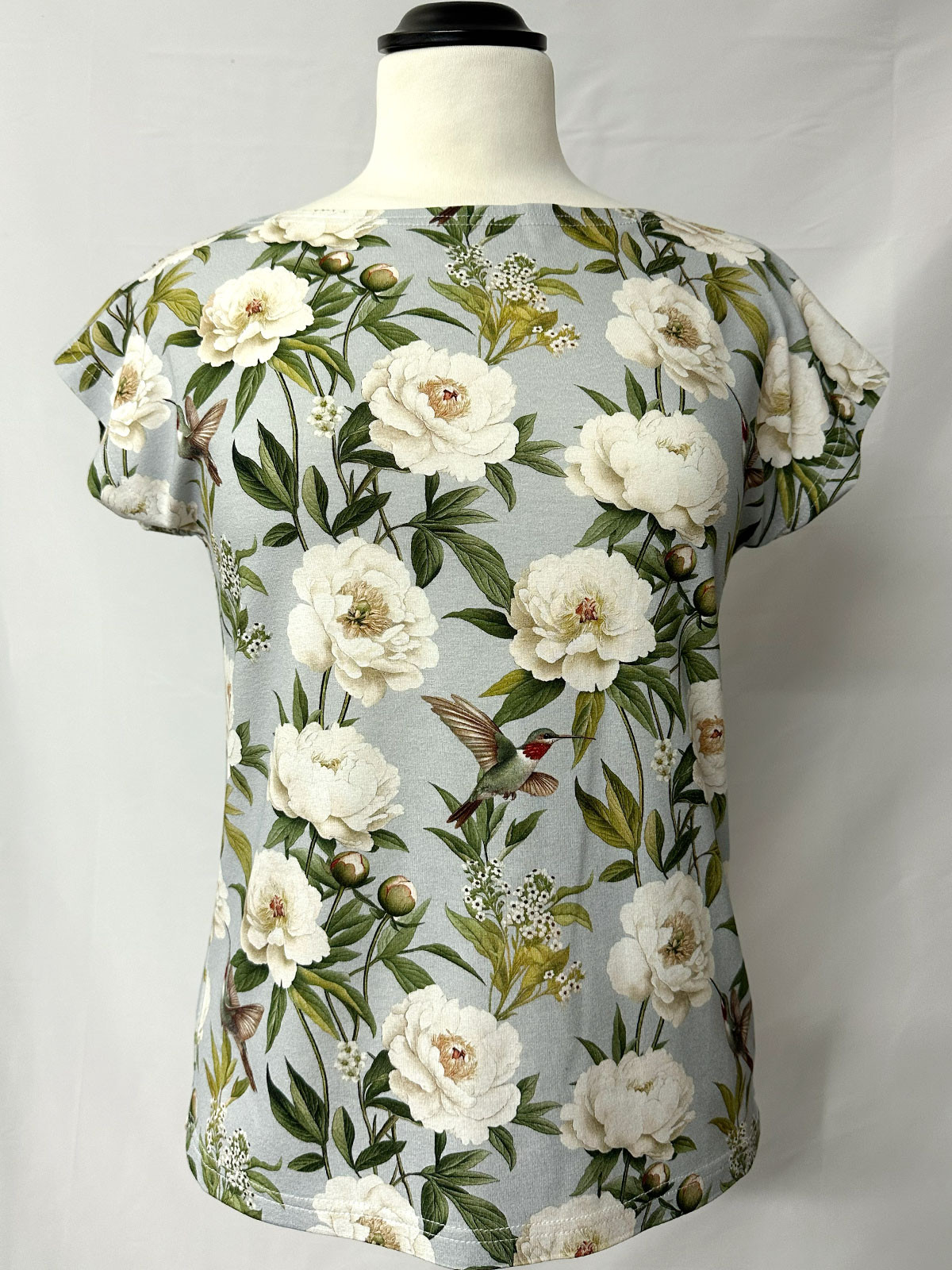 Toppen Alta från Camilla Thulin är en klassiker som återkommer varje säsong i nya härliga mönster och färger. Här i det vackra mönstret Peoni.