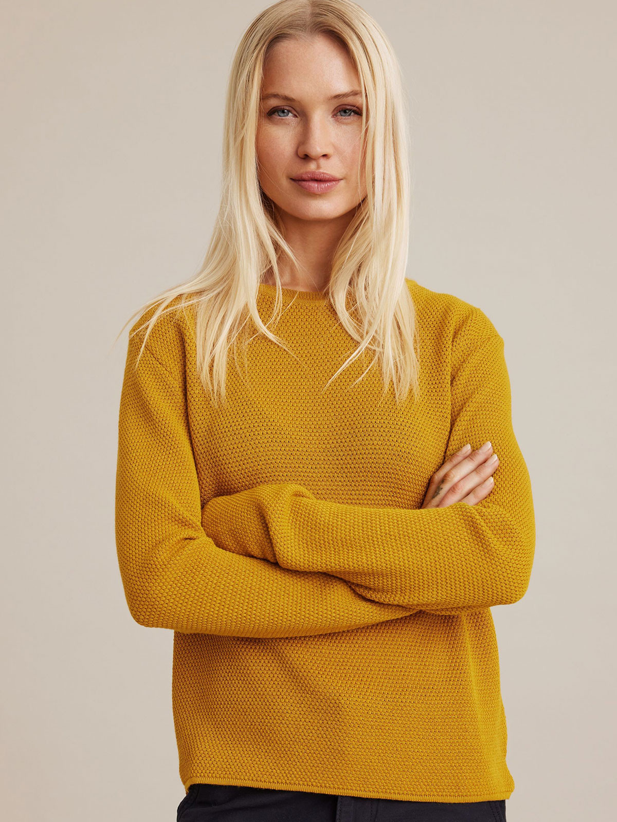Denna finstickade tröja från Sibinlinnebjerg är en klassisk tröja med rundad halsringning och lång ärm. Tröjan är mosstickad vilket ger en fin effekt och lyster. Otroligt mjuk och skön att bära.