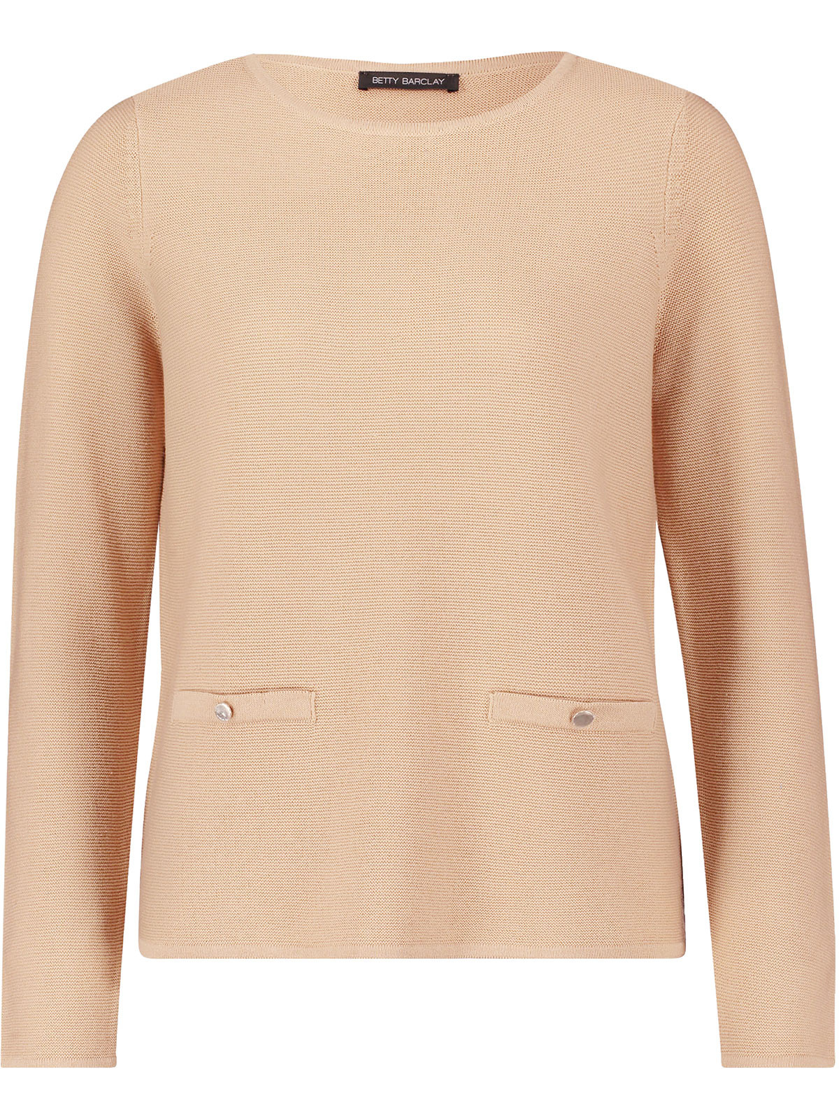 Stickad bomullströja från Betty Barclay med dekorfickor på framsidan. Modellen är båtringad, har hellång ärm och rak nederkant.