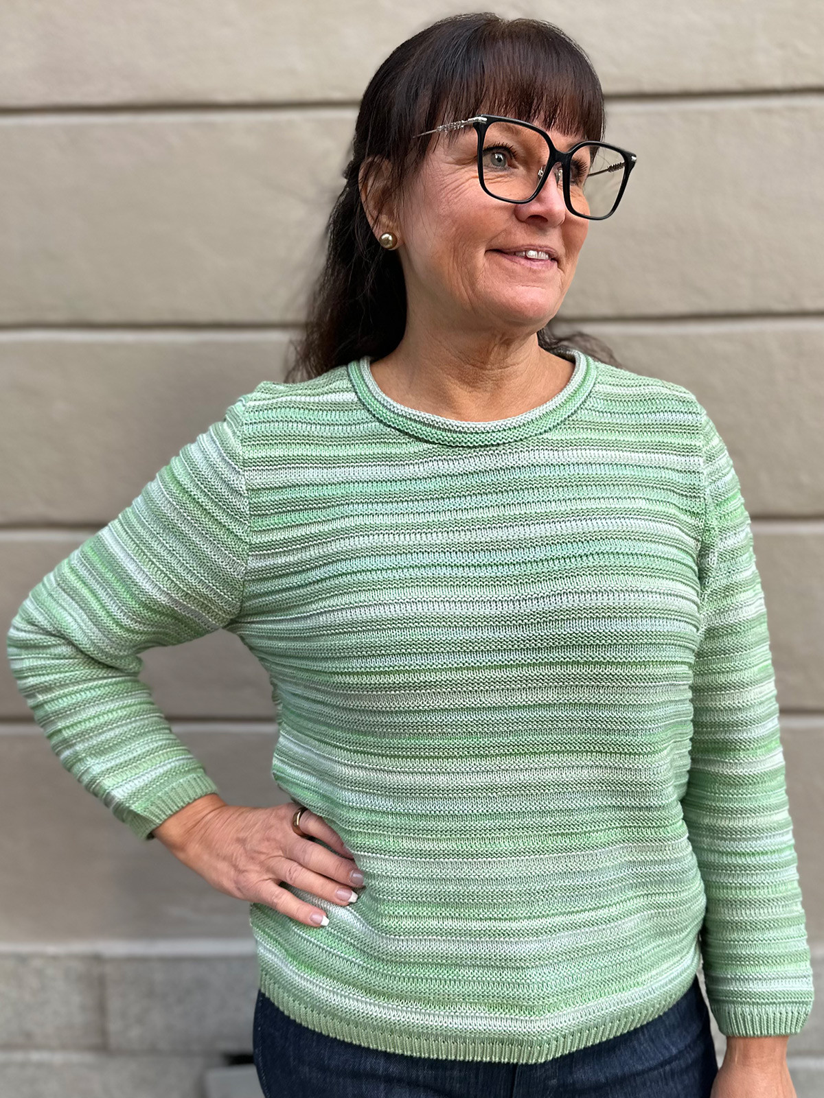 Stickad tröja gröna ränder från Skovhuus