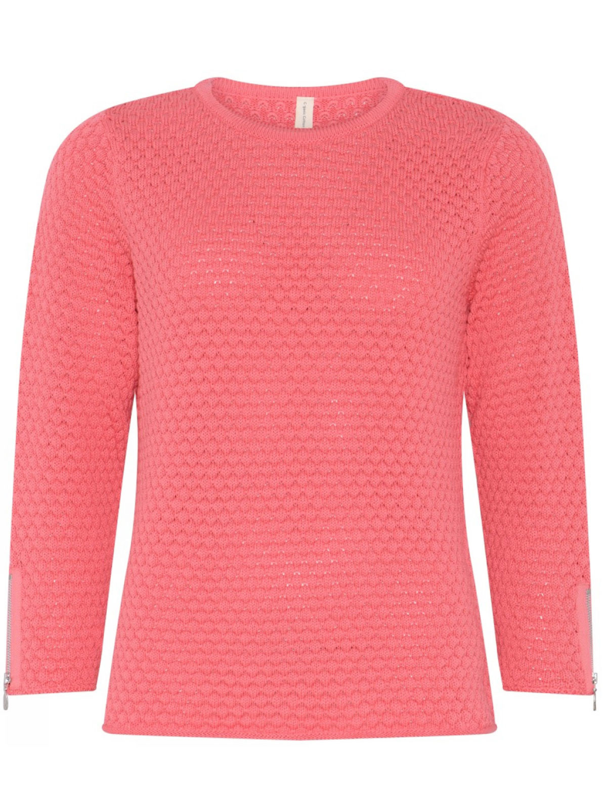 Stickad tröja i 100% bomull från danska Skovhuus. Rundad halsringning och 3/4 dels ärm lång ärm med silverfärgad dragkedja som snygg detalj.