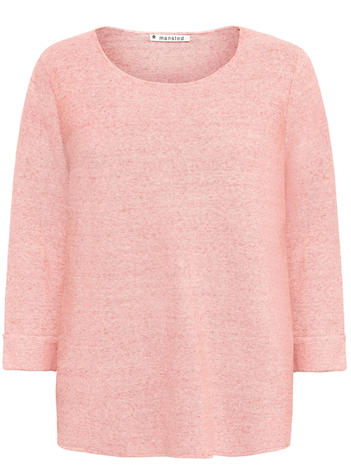 Tröja i modell Moriko från Mansted. Modellen är rak med ett litet sprund i sidan nertill, rundad hals och 3/4 dels ärm med ett uppvik. 100% ekologisk bomull!