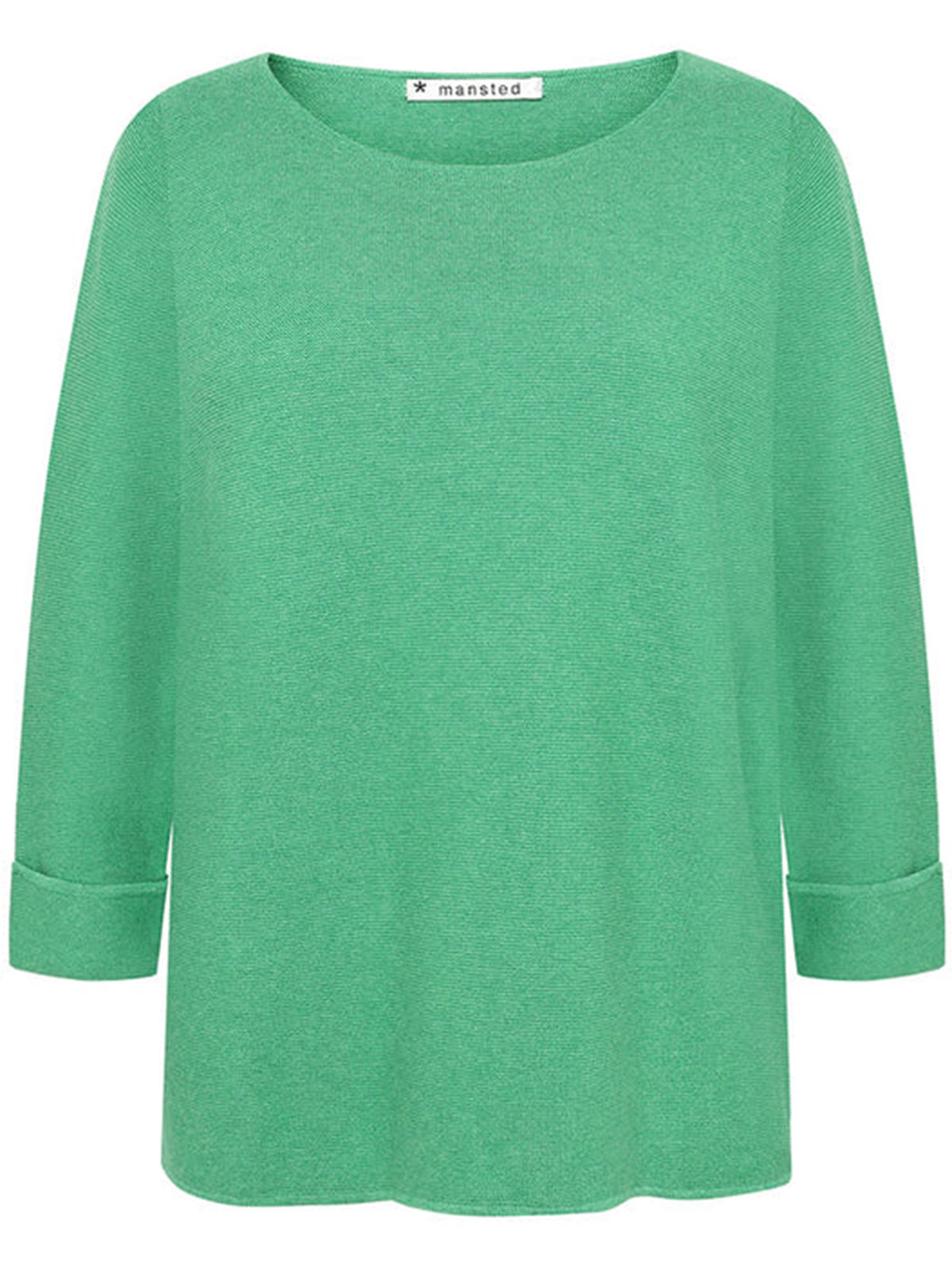 Tröja i modell Moriko från Mansted. Modellen är rak med ett litet sprund i sidan nertill, rundad hals och 3/4 dels ärm med ett uppvik. 100% ekologisk bomull!