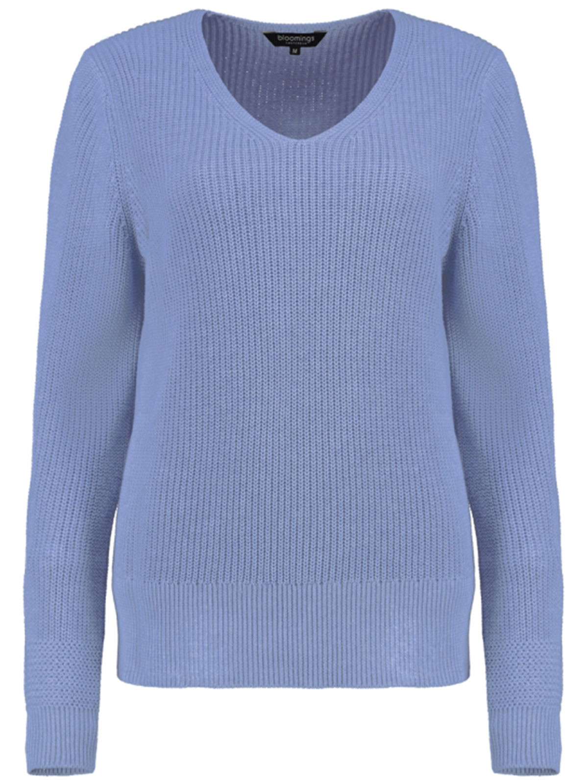 Stickad tröja från Bloomings i 100% bomull. Modellen är rak och har mjukt V-ringad hals, hellång ärm och avsluten har muddar.