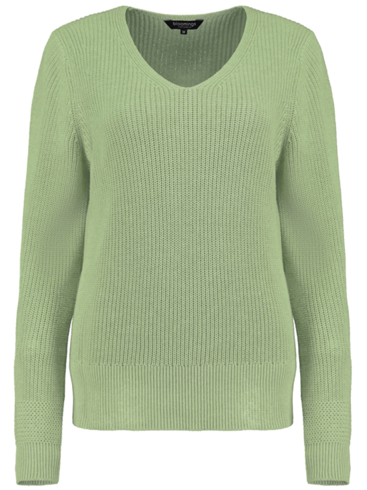 Stickad tröja från Bloomings i 100% bomull. Modellen är rak och har mjukt V-ringad hals, hellång ärm och avsluten har muddar.