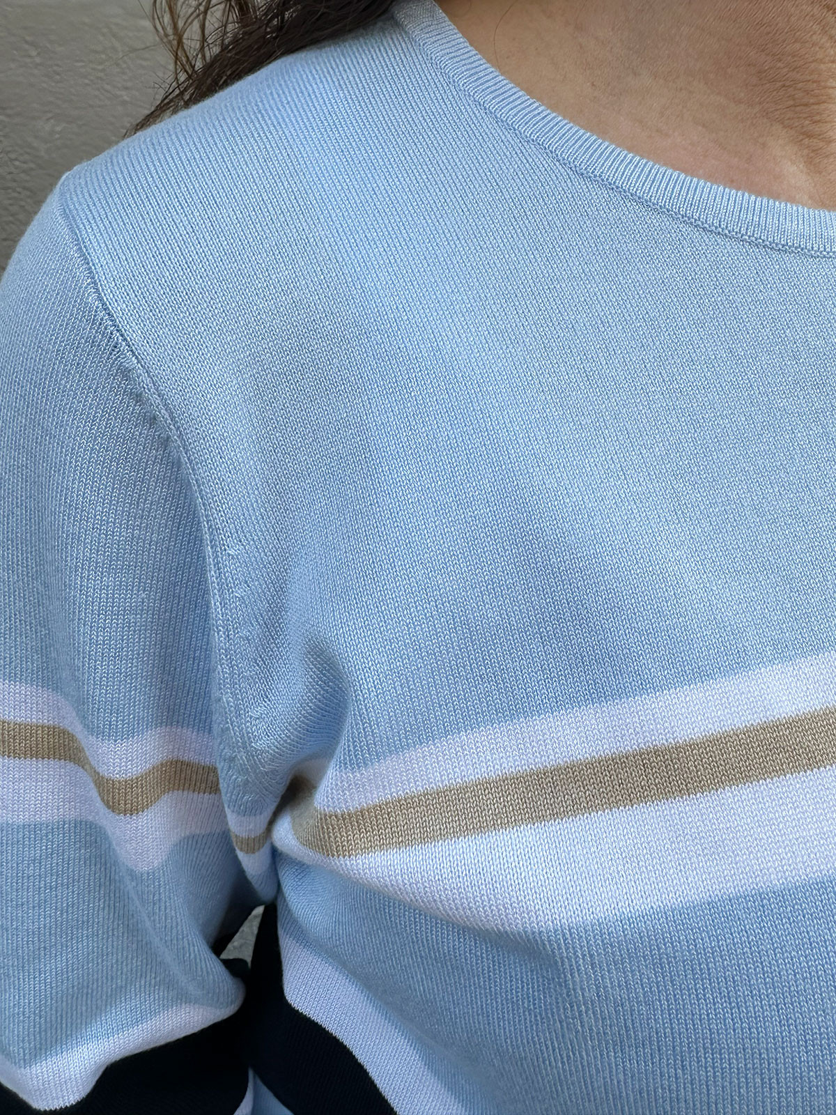 Finstickad tröja ljusblå randig från Micha