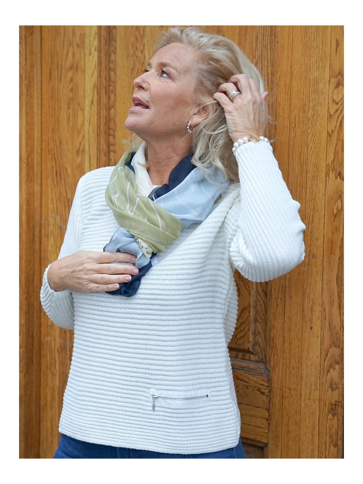 Stickad tröja i 100% ekologisk bomull från danska Skovhuus. Rundad halsringning och lång ärm. Detalj med dragkedja på framstycket. Zip tröjan från Skovhuus är en modell vi alltid har i lager, varje säsong kommer det nya färger och nyanser.