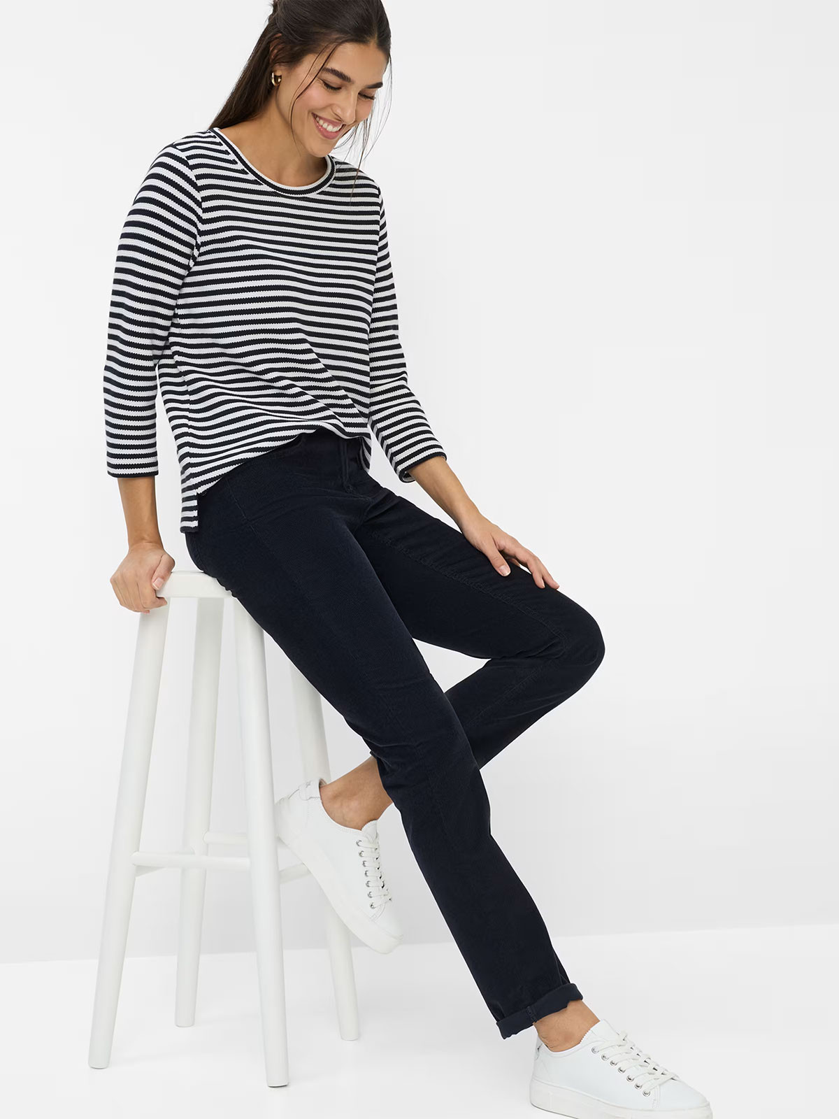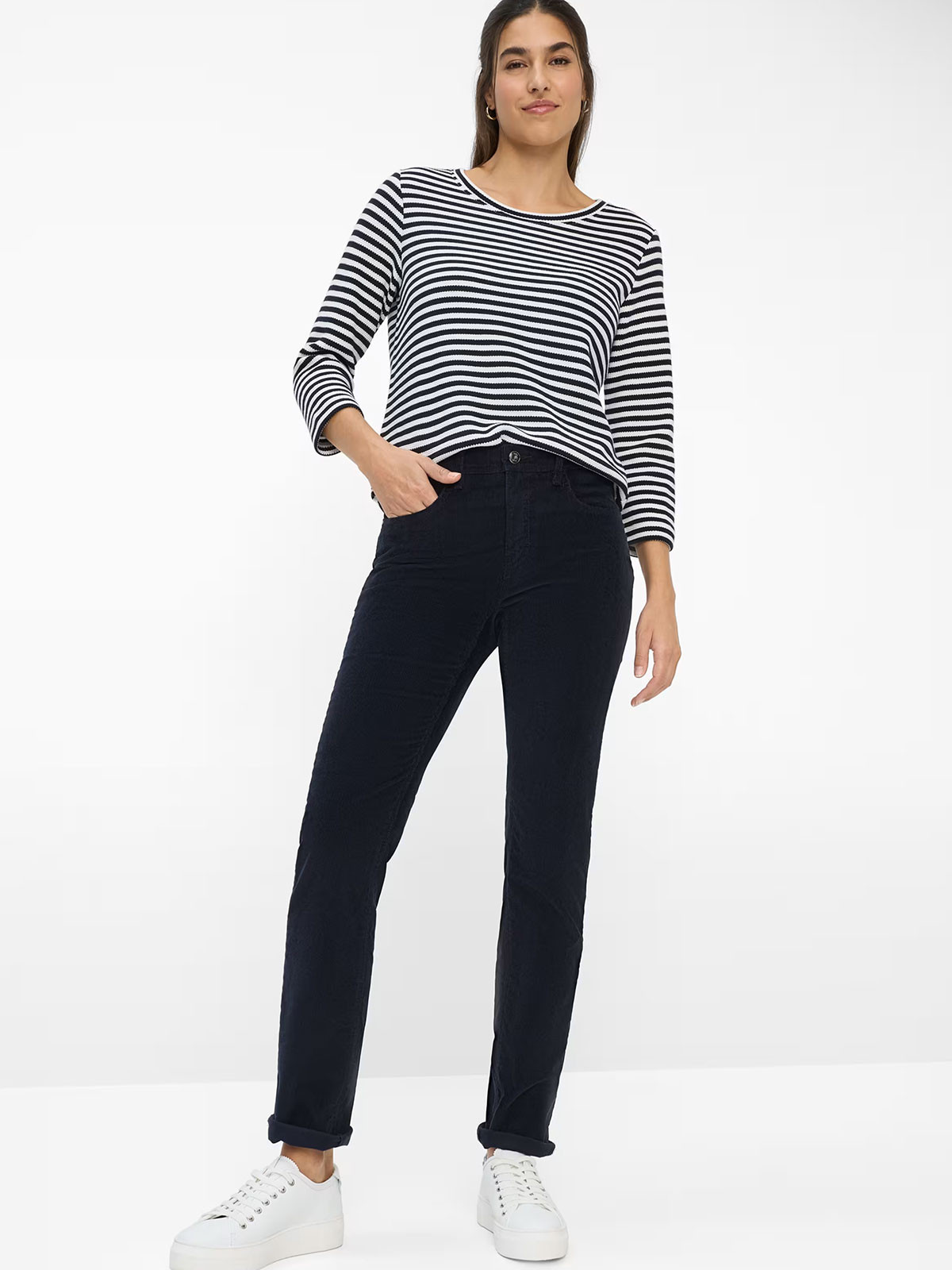 Högkvalitativ smalspårig mjuk manchesterbyxa i modell Mary från Brax.