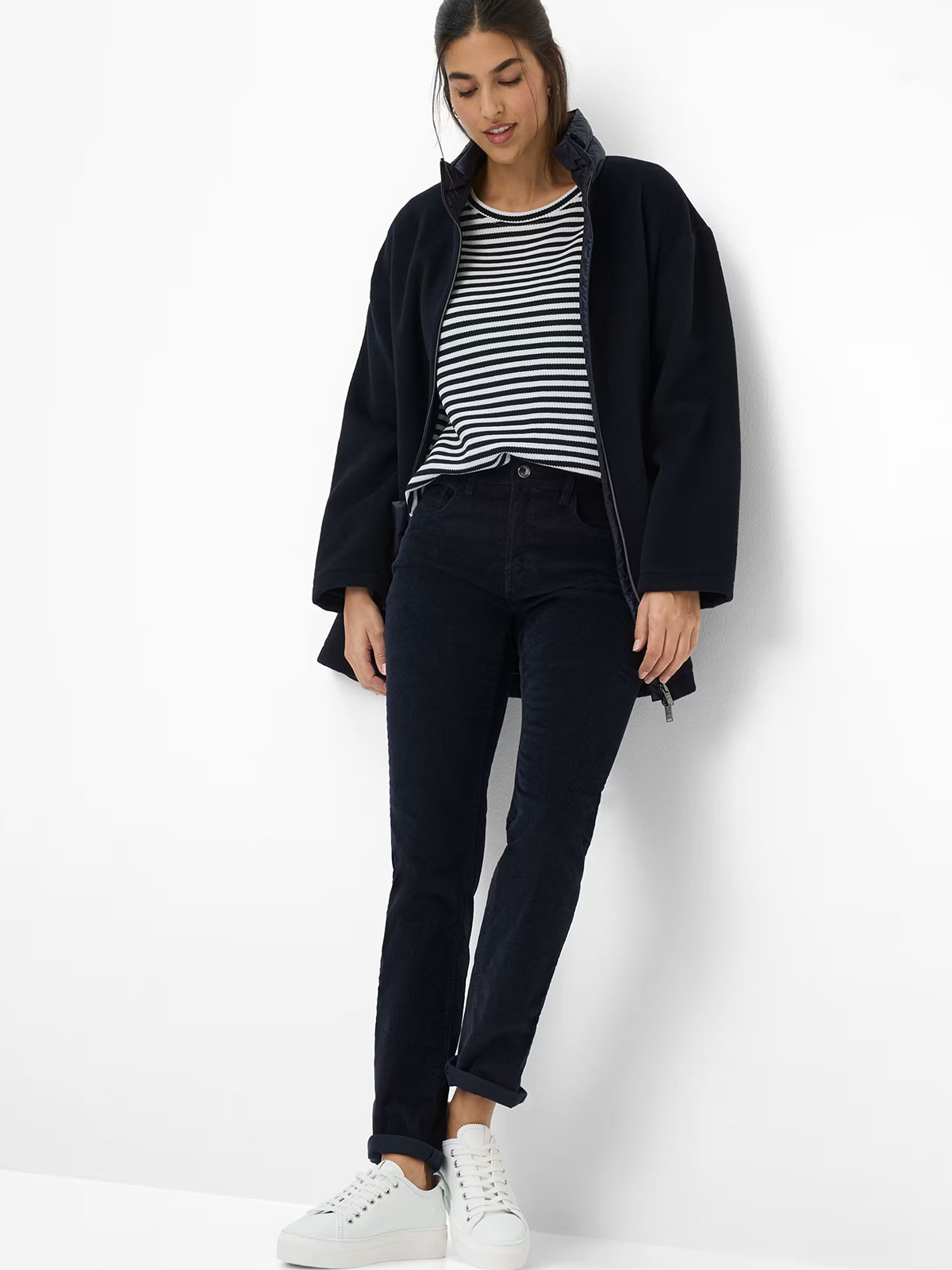 Högkvalitativ smalspårig manchesterbyxa i modell Carola från Brax. Klassisk byxa som sitter skönt mot huden och detta är den perfekta byxan till höst och vintertid. Femficksmodell och hällor runt om. Carola är en modell med hög midja och extra utrymme för höft och stuss. Ett rakt ben som inte smiter åt. Otrolig passform och snygg till många tillfällen.
