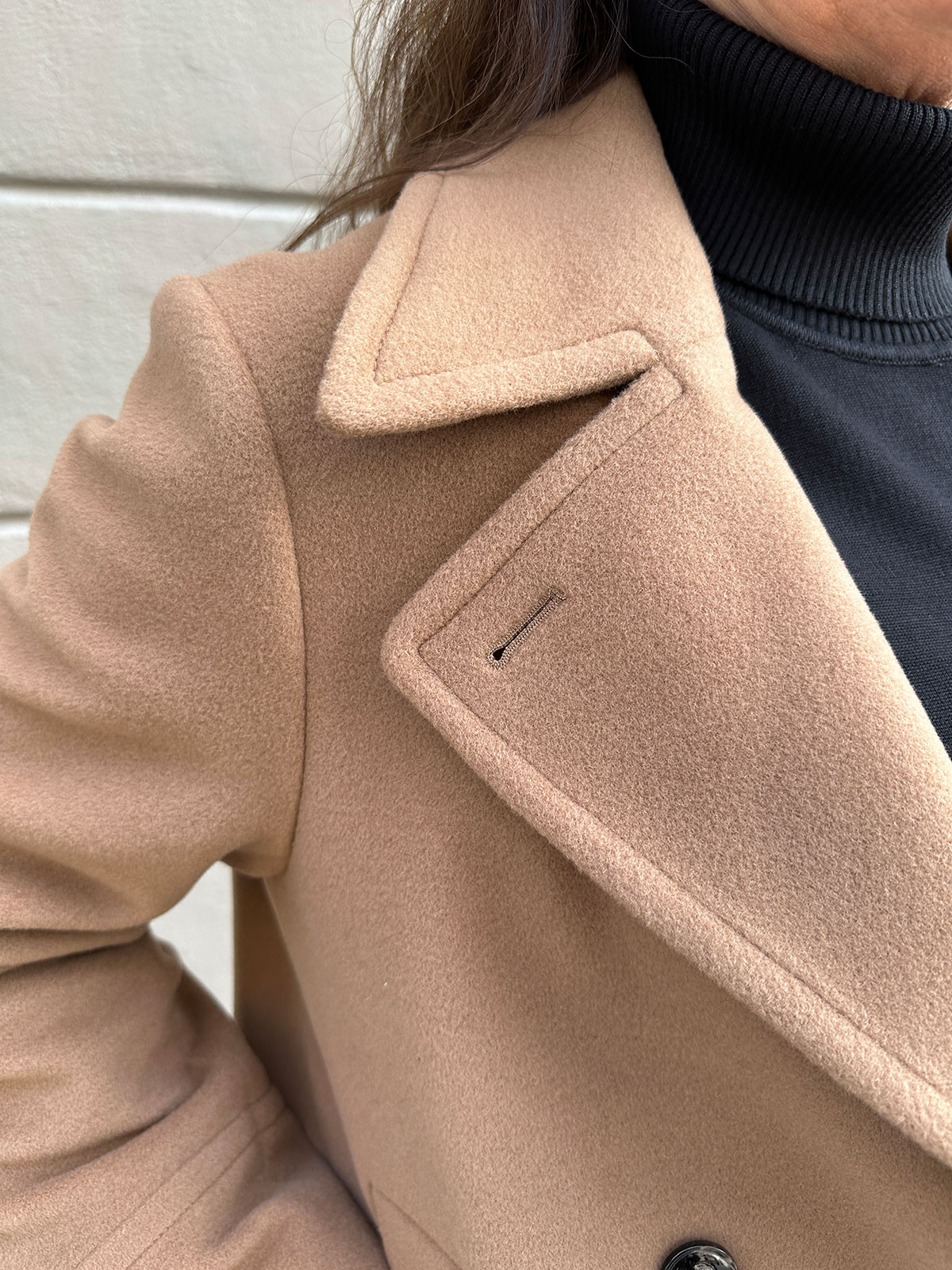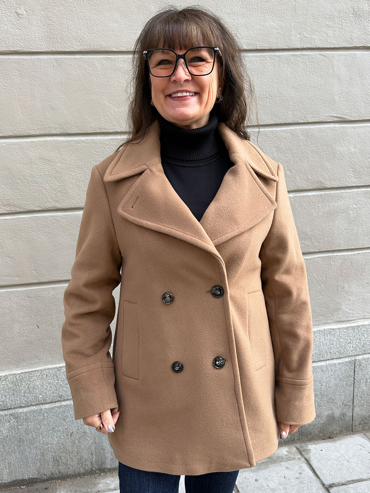 Kort ullkappa från Claire Woman i lätt A-ställd modell med klassisk krage och ljuvlig kvalitet.